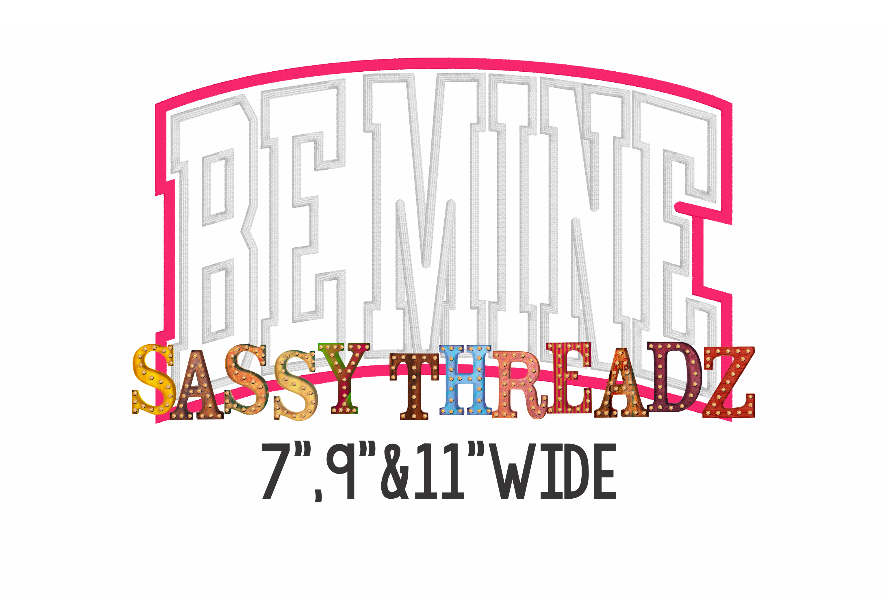 Be Mine Athletic Arched Satin Stitch Stacked Valentine Embroidery Download